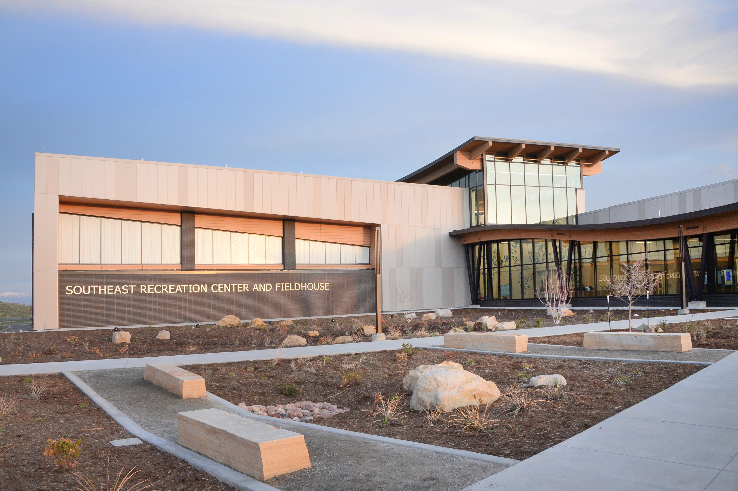 Located near the Aurora Reservoir, Southeast Recreation Center and Fieldhouse set a new standard for access to fitness and recreation for residents in and near Aurora, Colorado, when it opened its doors in 2023. The 77,000-square-foot facility features gymnasiums, tracks, and other outdoor fitness areas, along with a field house, pool, community spaces, various indoor exercise areas, and lounges.