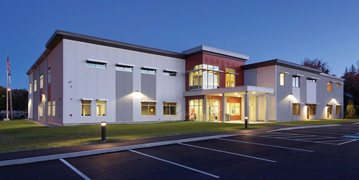 “Insulated metal panels provided us with an aesthetic that made the facility not look like a metal building,” says Brittany Blin, an associate with Bruce Ronayne Hamilton Architects of New Ipswich, N.H. “We didn’t want it to stick out as a cold building, but a gathering place where families feel welcome. Specifying panels in different colors really warms up the appearance.”